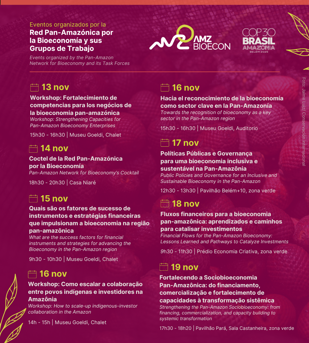 The Pan-Amazon Bioeconomy Network will take part in COP30, presenting task force results and advancing the positioning of the Amazonian bioeconomy within the global climate agenda.
